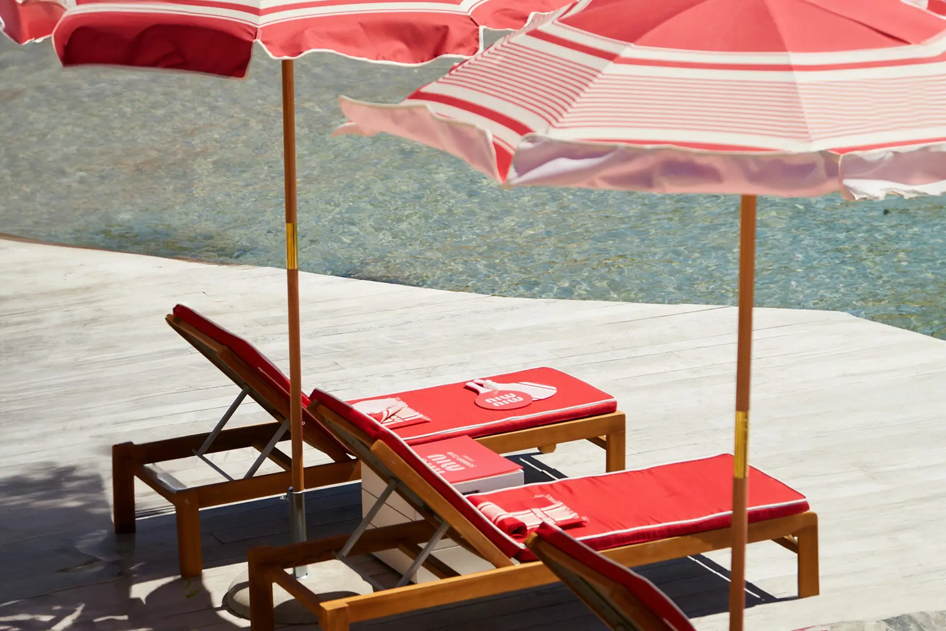 The Lake Como summer reverie continues with the pop-up Dior Café, which is furnished with spectacular toile de Jouy parasols and chaise longues from the Dioriviera collection by creative director Maria Grazia Chiuri.