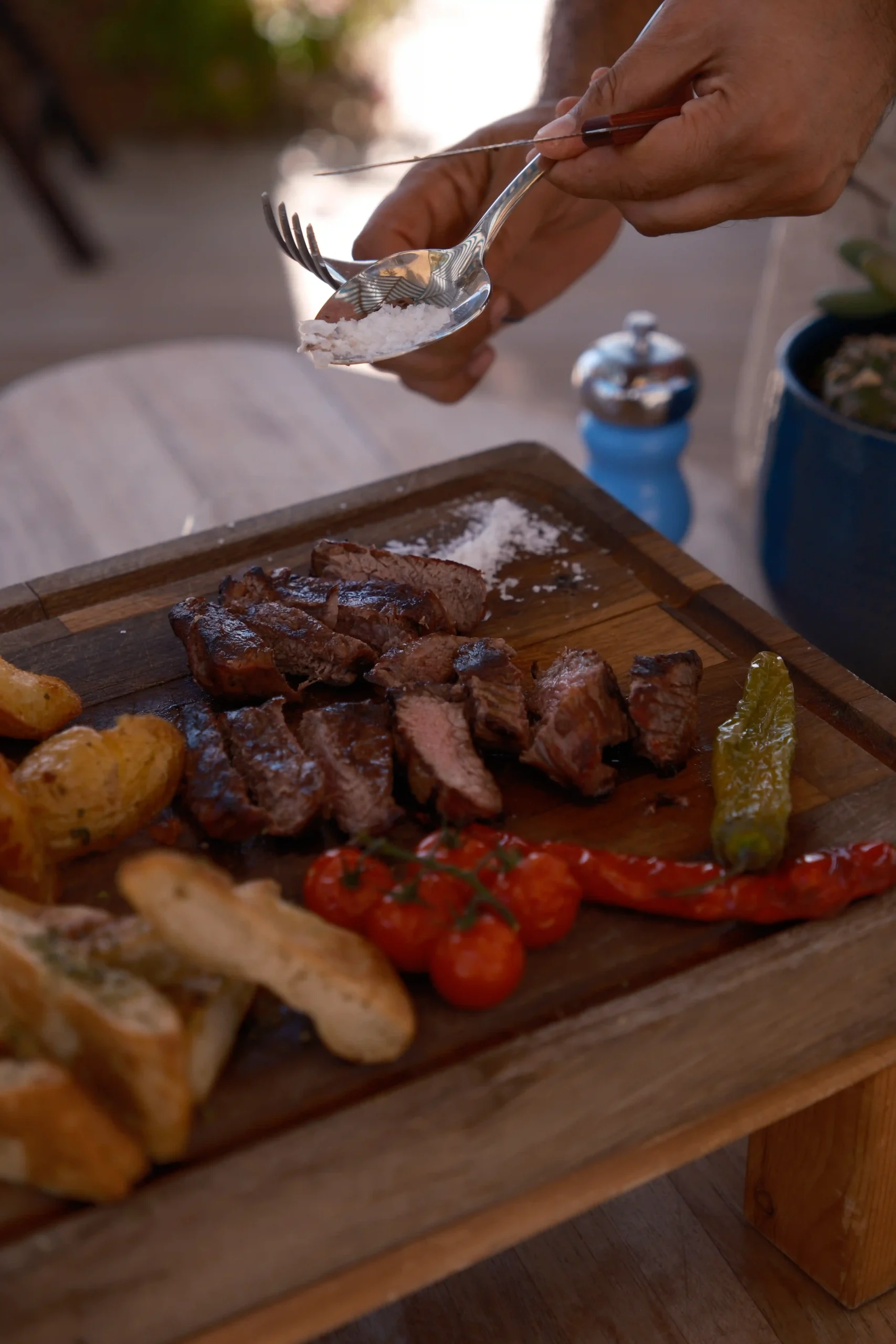 Next arrived not one but two generous platters of pasta: one tossed in a rich tomato sauce that smelled of basil and sun-ripened fruit, the other a hearty pasta ragu, slow-cooked meat bathing in layers of flavour, served tableside. Alongside, a beautiful cut of beef, perfectly seared, kissed with extra-virgin olive oil and sprinkled with coarse sea salt, so that each bite was juicy and luminous.