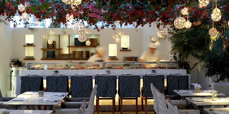 Japanese/South American dishes at the world-famous Matsuhisa Mykonos; The Belvedere Club has innovative Greek cuisine